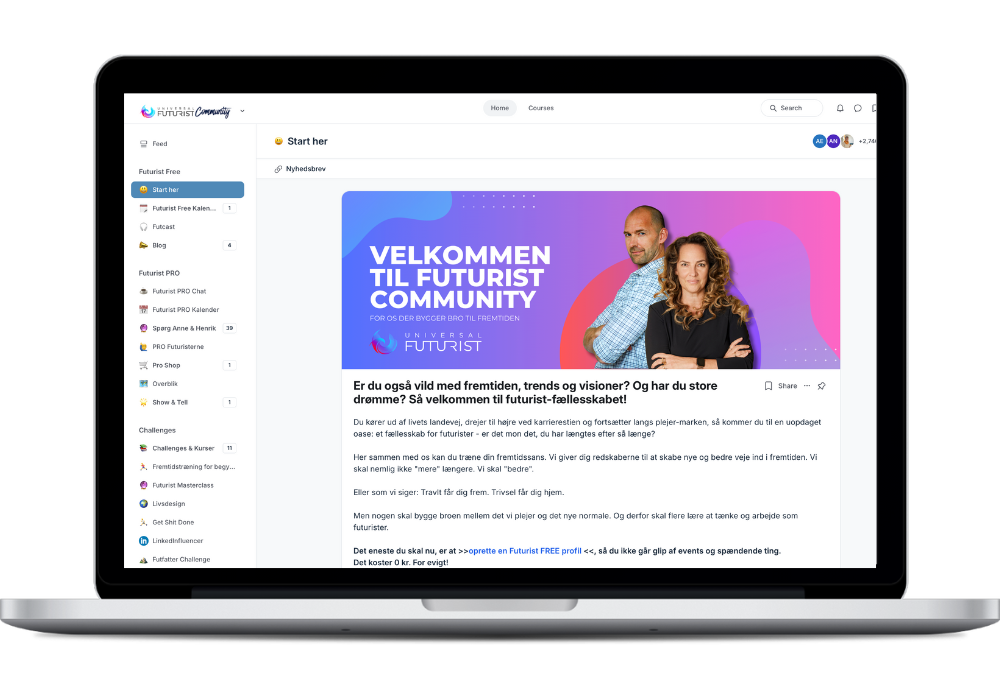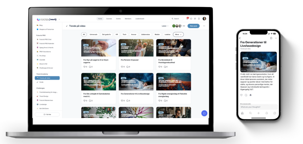 Vores online træningsunivers fyldt med kurser, challenges træning og rådgivning. Her træner vi alle vores medlemmer i at mestre fremtiden.