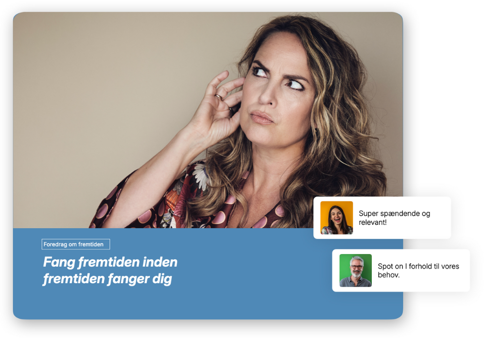 Hæsblæsende, provokerende & humoristiske foredrag og workshops. Få de professionelles perspektiv på fremtiden inden for dit område.
